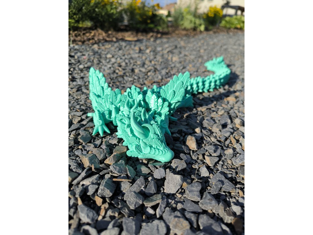 🌙🐉 Lunární dráček z 3D tiskárny – 3D tištěná hračka a fantasy dekorace pro děti i dospělé Designová česká tvorba – pohyblivý lunární fantasy drak s listovými výběžky