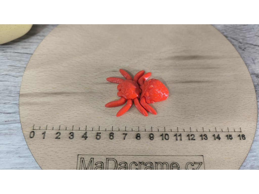 Představujeme vám roztomilého a unikátního 3D tištěného pavoučka skákavku z PET-G, který na svém zadečku nese jahodu. Tento pohyblivý pavouček je nejen skvělou dekorací, ale také antistresovou pomůckou pro děti s ADHD. Jeho detailní zpracování a jedinečný design přinášejí radost a podporují relaxaci a soustředění.