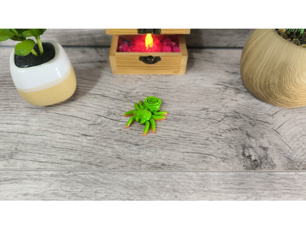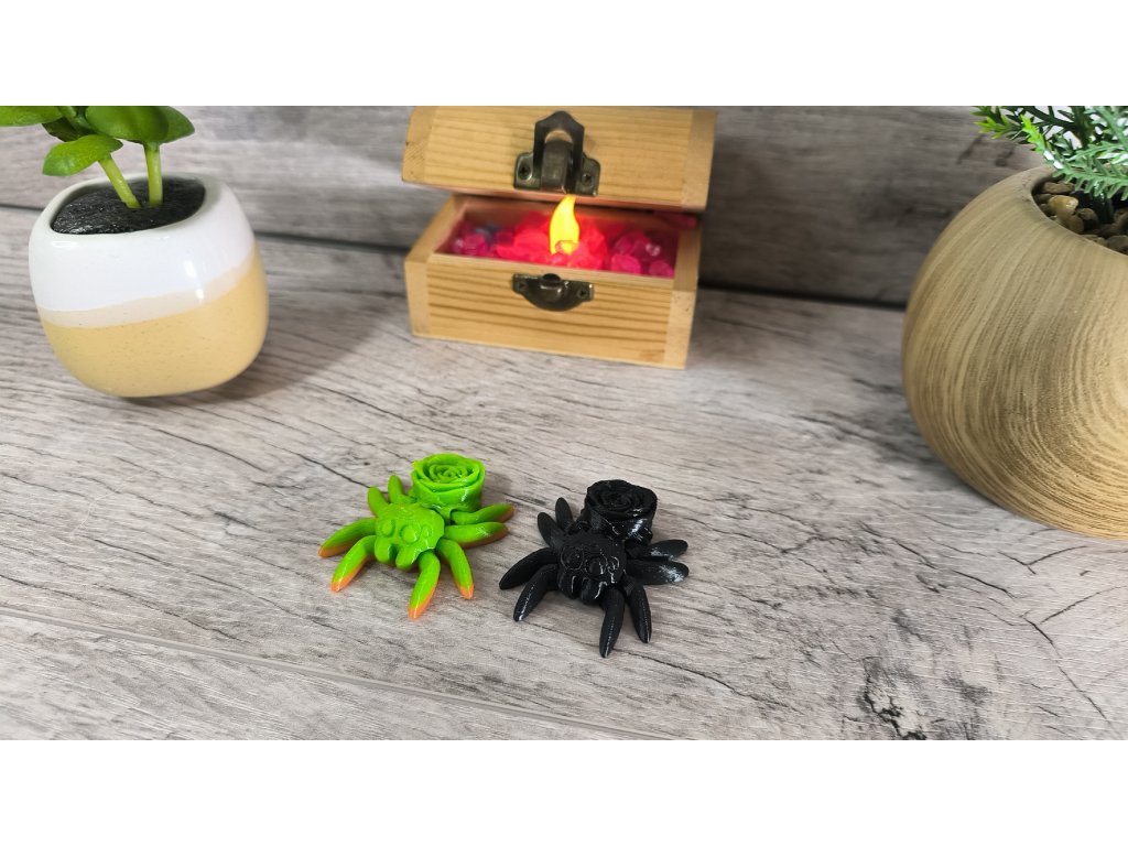Představujeme vám našeho elegantního 3D tištěného pavoučka skákavku z PET-G, který na svém zadečku nese růži. Tento pohyblivý pavouček je nejen vkusnou dekorací, ale také skvělou antistresovou pomůckou pro děti s ADHD. Jeho detailní zpracování a romantický design podporují relaxaci a soustředění.