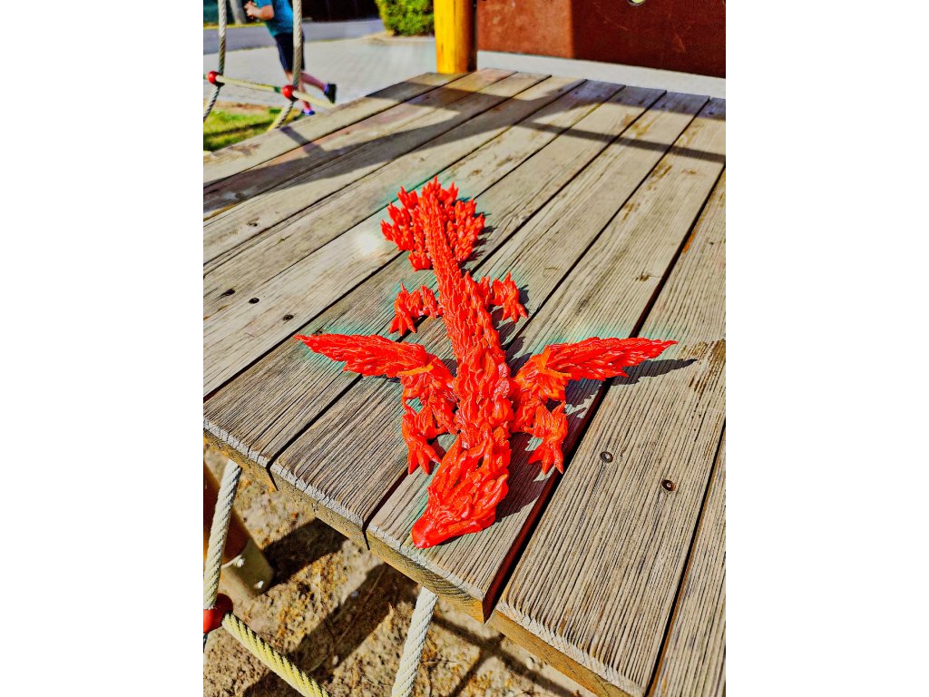 🔥🕊️ Z popela povstal a přistál přímo na vaší polici. Tento fantasy fénix z 3D tiskárny je dlouhý 60 cm, tištěný v jednom kuse, bez spojů, bez kompromisů. Je to pohyblivá figurka, která působí jako socha z legendy — s plamennými detaily, ladnými křídly a tělem, které se vine jako živé. Ať už jako hračka pro děti, sběratelský klenot nebo dekorace, fénix přináší sílu, eleganci a příběh.
