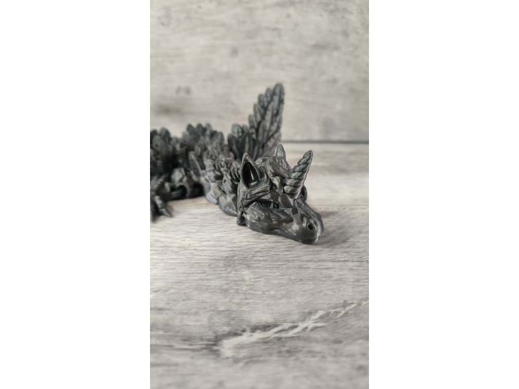 🦄🐉 Když se spojí síla draka s jemností jednorožce, vznikne bytost, která okouzlí každého. Tento fantasy drak na styl jednorožce je dlouhý cca 60 cm, tištěný v jednom kuse z odolného PET-G materiálu. Má ladné křídla, jemné rysy a tělo, které se vine jako pohádková stužka. Je to pohyblivá figurka z 3D tiskárny, která působí jako hračka i dekorace — ideální pro děti, které milují kouzelné bytosti, i pro dospělé, kteří si rádi vystaví něco výjimečného.